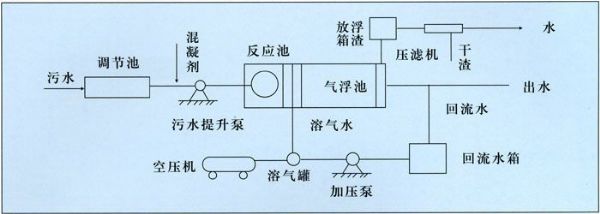 4、气浮时向水中曝气,对去除水中的表面活性剂及臭味有明显的效果,同时由于曝气增加了水中的溶解氧,为后续处理提供了有利条件。