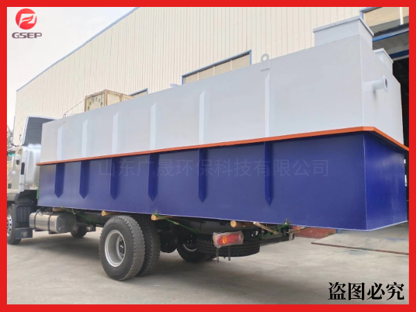 其一侧设置有进水口,反应池内设置有浸没式帘式膜组件,容纳有活性污泥,周边曝气和膜片曝气管路与风机联通,膜组件上配套的集水管与抽吸泵联通,待处理的污水通过进水口进入 MBR 生化反应池,污水在反应池内的 HRT 为 5h。经反应池内的活性污泥降解后,通过抗污染平板膜组件,然后由抽吸泵吸出进入清水消毒池。反应池内还设置有污泥提升泵,可以把多余的污泥提升到污泥硝化池内。反应池上部开有溢流口,可以使污水自流到箱外调节池。下部一侧开放空口,便于池内结构维护、清理。